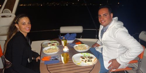 Una serata romanticissima, fatta dalle luci di questa meravigliosa citt, dal mare che ci ha accompagnato e dall’amore di Pietro e Ilaria che hanno scelto la nostra cena in barca